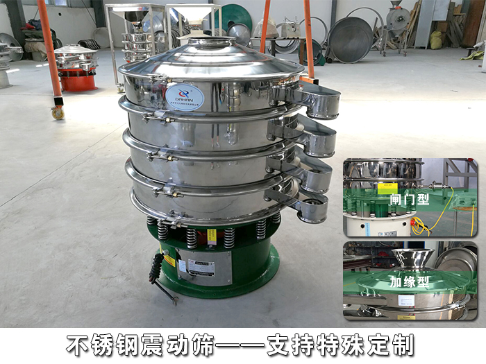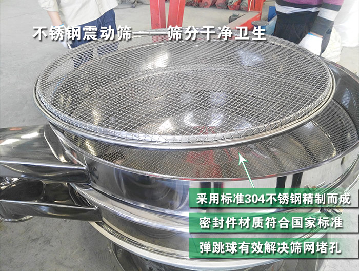 不銹鋼振動篩整機采用標(biāo)準(zhǔn)sus304不銹鋼精制而成,內(nèi)部所有接縫高精拋磨處理,密封件材質(zhì)符合國家食品安全標(biāo)準(zhǔn)。它全封閉的結(jié)構(gòu)可保證中西藥顆粒篩分過程中無粉塵溢散等情況發(fā)生,振動篩篩網(wǎng)下裝有彈跳球,可以對篩網(wǎng)進行清潔,有效解決篩網(wǎng)堵孔。
