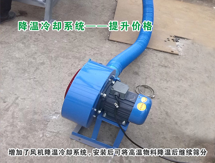 降溫直線振動篩是在大漢生產(chǎn)的DZSF系列直線振動篩的基礎上,增加了風機降溫冷卻系統(tǒng)的新型直線振動篩,安裝后可將高溫物料降溫后繼續(xù)篩分,這樣一臺風機降溫冷卻系統(tǒng)的價格在幾百到上千元不等,這是降溫直線振動篩加高提升的一個方面。