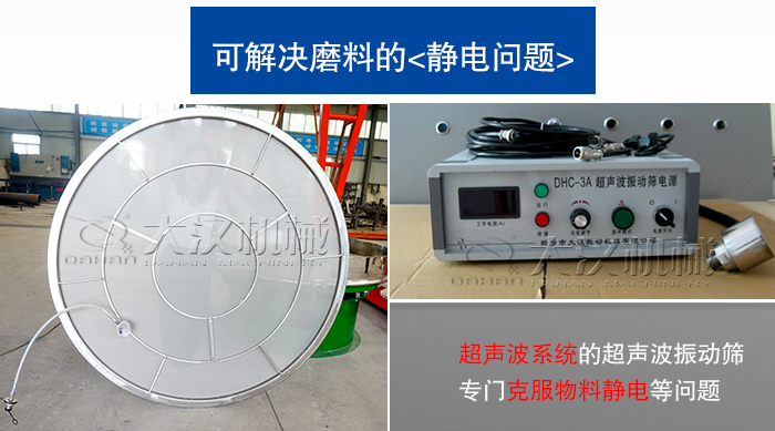 磨料用磨削較軟的材料表面,它比重較輕,容易產生靜電問題,而加裝了超聲波系統的超聲波振動篩能夠解決磨料因比重輕造成的靜電問題,同時也能減輕吸附、團聚等難篩問題。